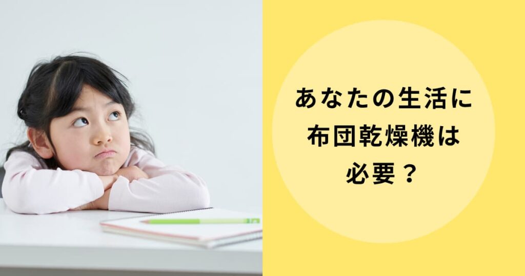 こんなお悩みはありませんか?布団乾燥機が便利そうなのは知っているけれど、「本当に必要?」「天日干しで十分じゃない?」「電気代や収納場所が気になる…」と、購入に一歩踏み出せない方も多いのではないでしょうか。